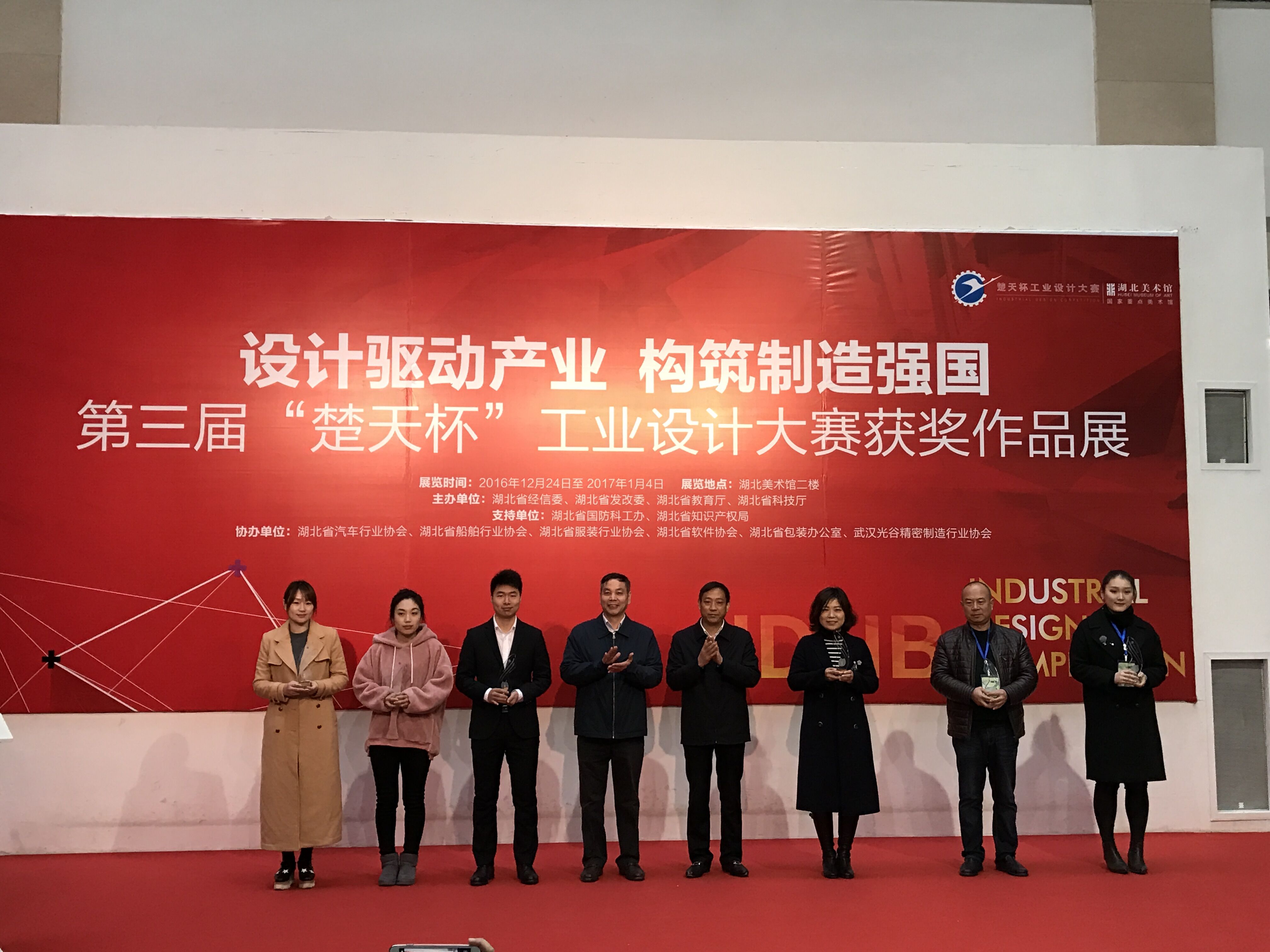 20141225日,由省经信委、省发改委、省教育厅和省科技厅联合举办的第三届“楚天杯”工业设计大赛获奖作品展暨颁奖仪式在湖北省美术馆举行。许克振副省长、省政府贺盛有副秘书长、省经信委欧阳万坤主任及发改委、教育厅、科技厅有关领导出席并为获奖选手颁奖。会议由省经信委王建民副主任主持。其中武大卓越隧道快速测量系统荣获湖北省“楚天杯”工业设计大赛二等奖,此次获奖是武大卓越连续第三个年头获得此次殊荣。