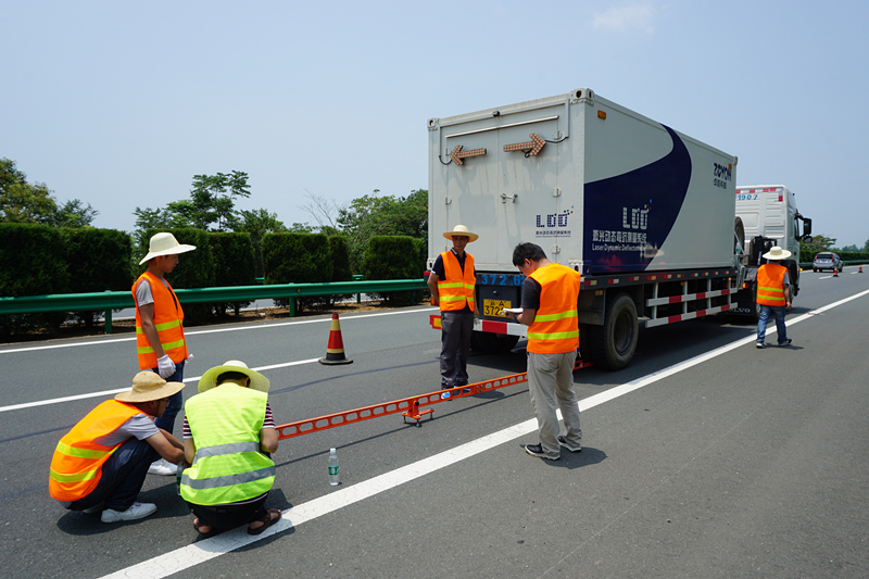 比对地点设在福银高速汉十段上行K1018至K1020处。国家道路与桥梁工程检测设备计量站安排3位工程师全程参与其中,便于对检测过程及数据结果进行科学、准确、客观的评估。