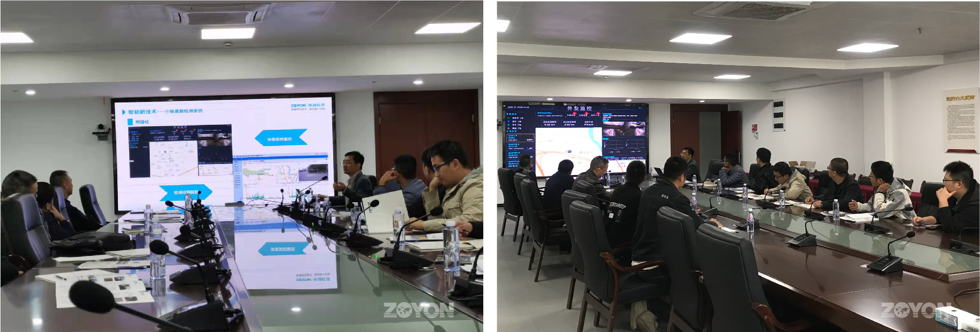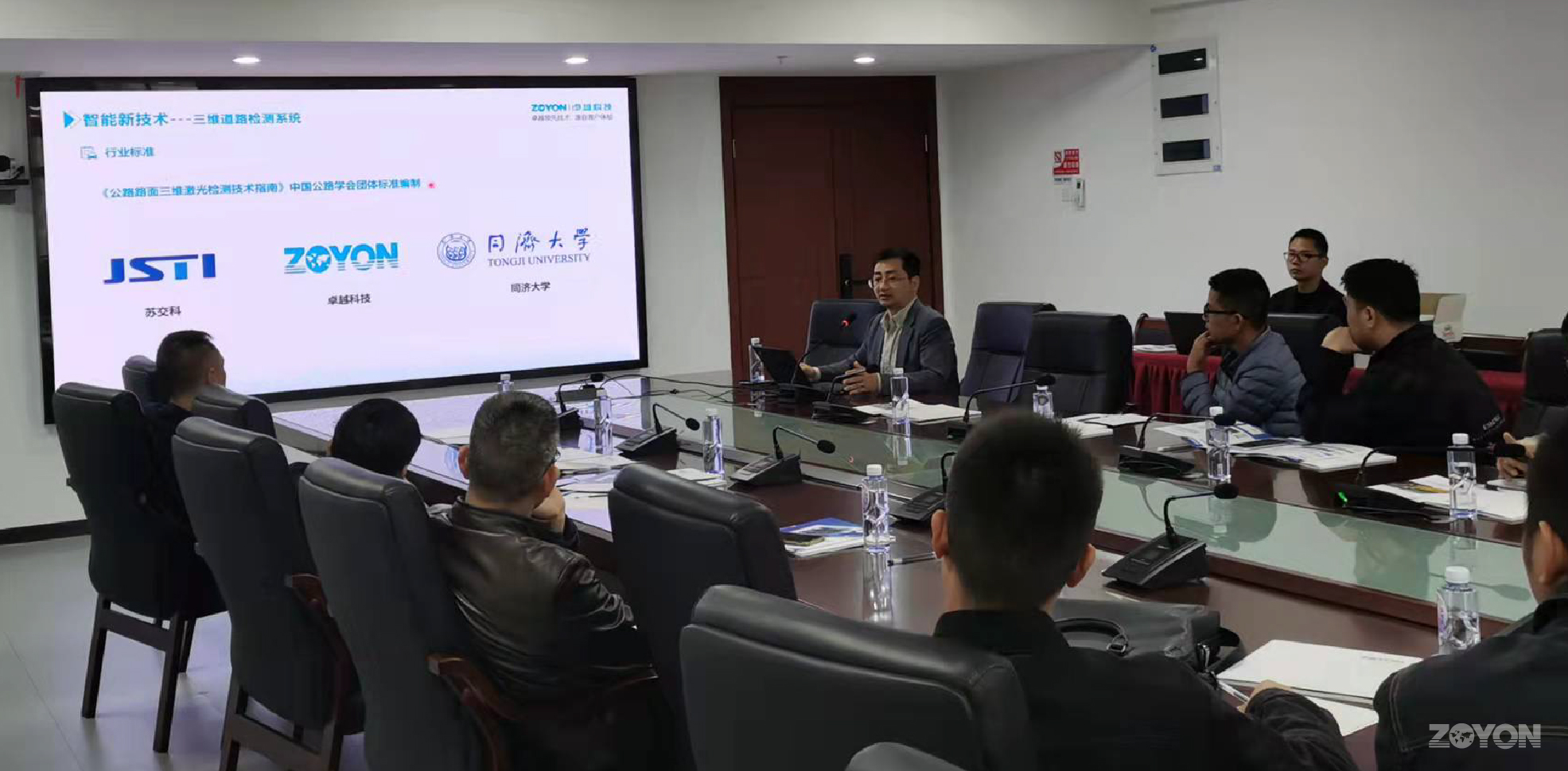 卓越科技卢总在现场对ZOYON-RTM-3D多功能路况快速检测系统进行了详细介绍。参会领导全程在线观看了ZOYON-RTM-3D检测系统的外业检测演示,充分展示了三维多功能路况快速检测系统的功能和应用。此次报告会及演示产品得到了现场领导的高度认可。