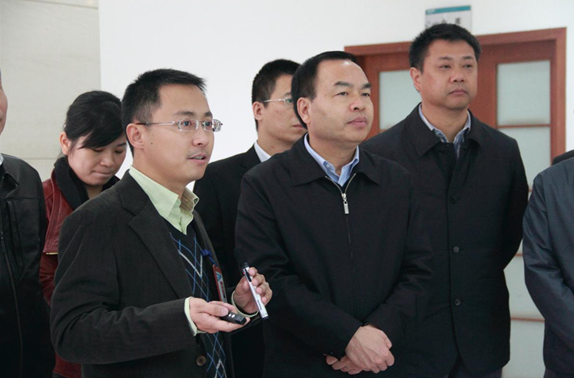 20121115日上午,武汉市委副书记、市长唐良智在市、区相关部门领导陪同下,莅临我公司视察和指导工作。卓越科技董事长兼执行总裁曹民热情接待了来访领导。